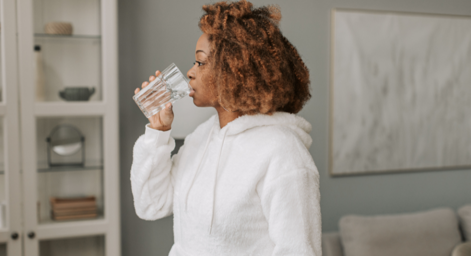GLP-1 can quiet thirst just like it quiets hunger, which makes dehydration easier than you might expect. And dehydration often shows up as fatigue, headaches, nausea, or constipation. So when in doubt, drink up.