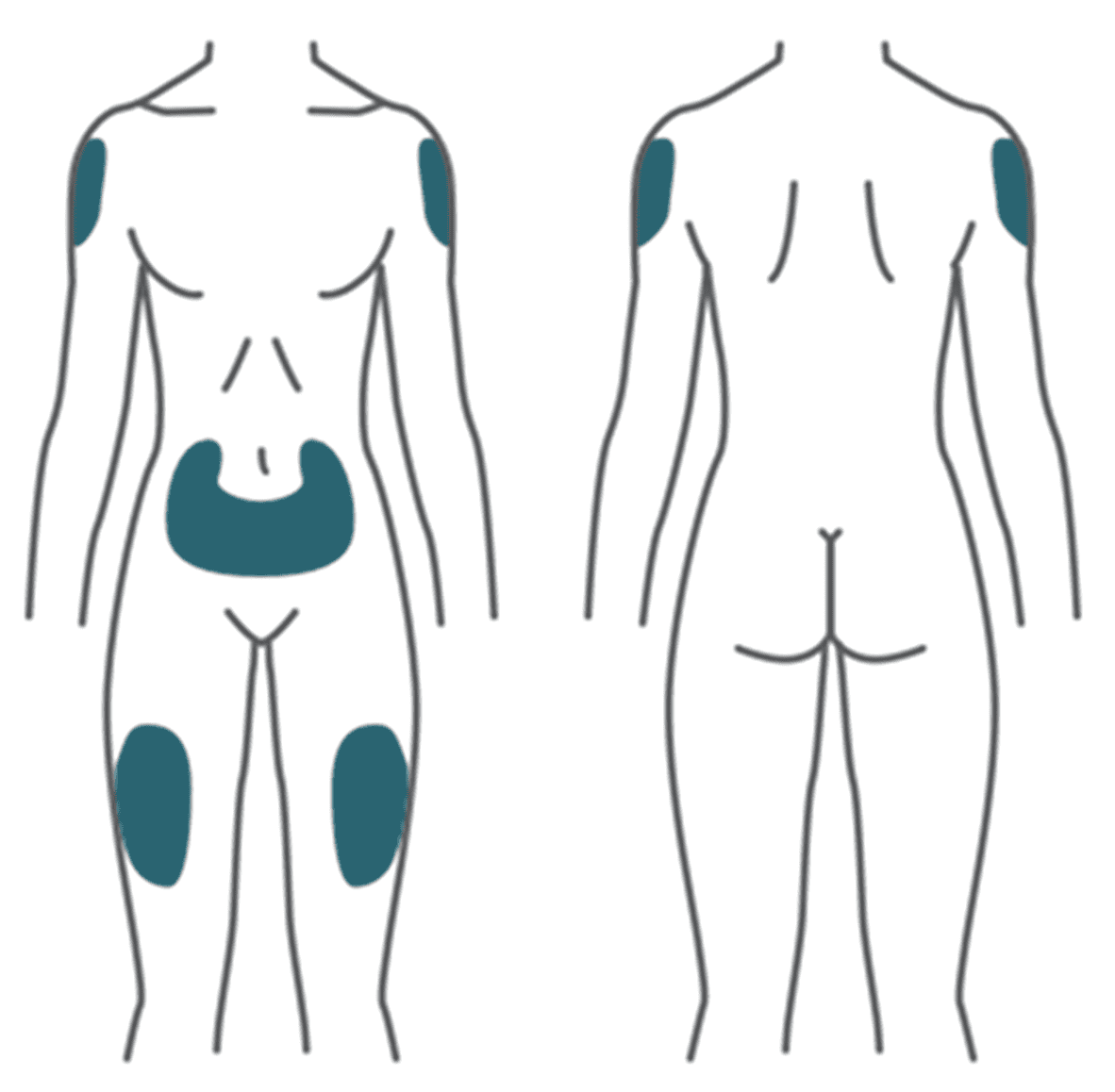 Injected under the skin of your abdomen, thigh, or upper arm. Do not inject into a muscle or vein Change (rotate) your injection site with each injection. Do not use the same site for each injection. If you choose to inject in the same area, always use a different spot in that area.