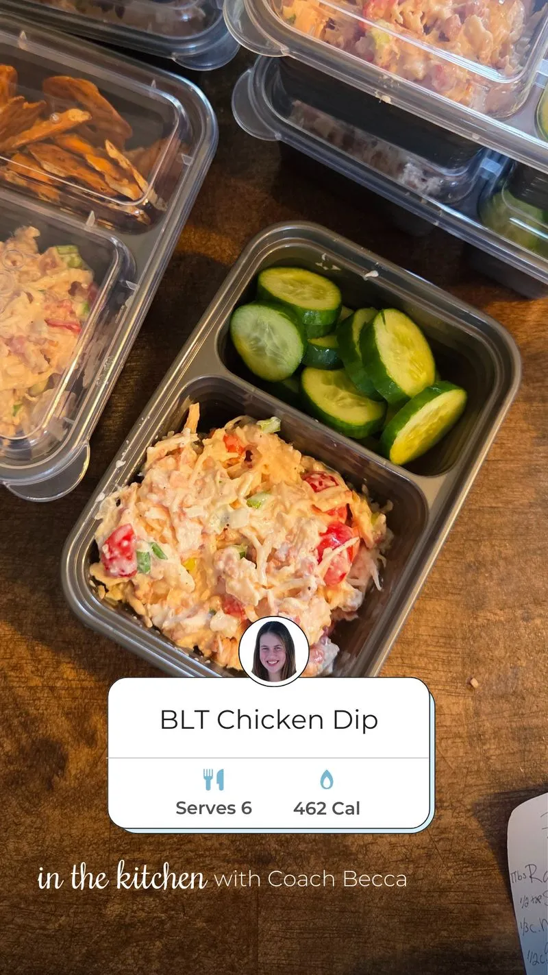 This amazing BLT chicken dip is perfect for a make ahead meal or hardy snack. It has the best flavors and it’s so easy to make! Mix up a bowl of it and put in storage containers for your week. It's that easy!