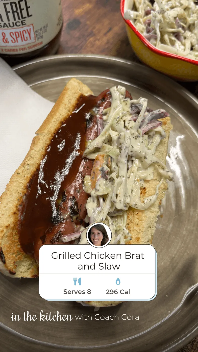 This chicken brat and slaw is perfect for an on-plan BBQ!