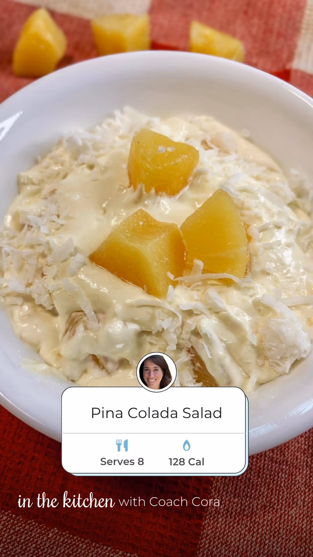 This lightened-up Piña Colada Salad brings all the island vibes with way fewer calories! Refreshing, creamy, and just the right touch of sweet—no blender required!