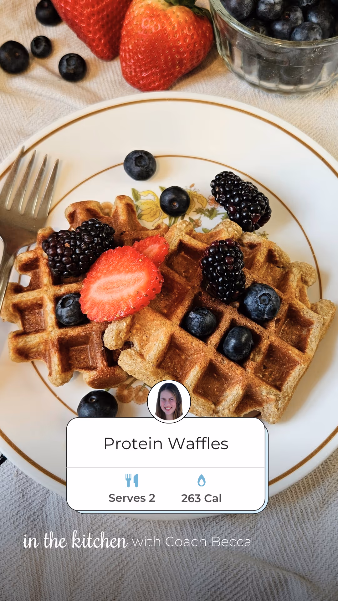 Start your morning with a stack of fluffy, protein-packed waffles! Perfect for fueling your day while keeping you on track.