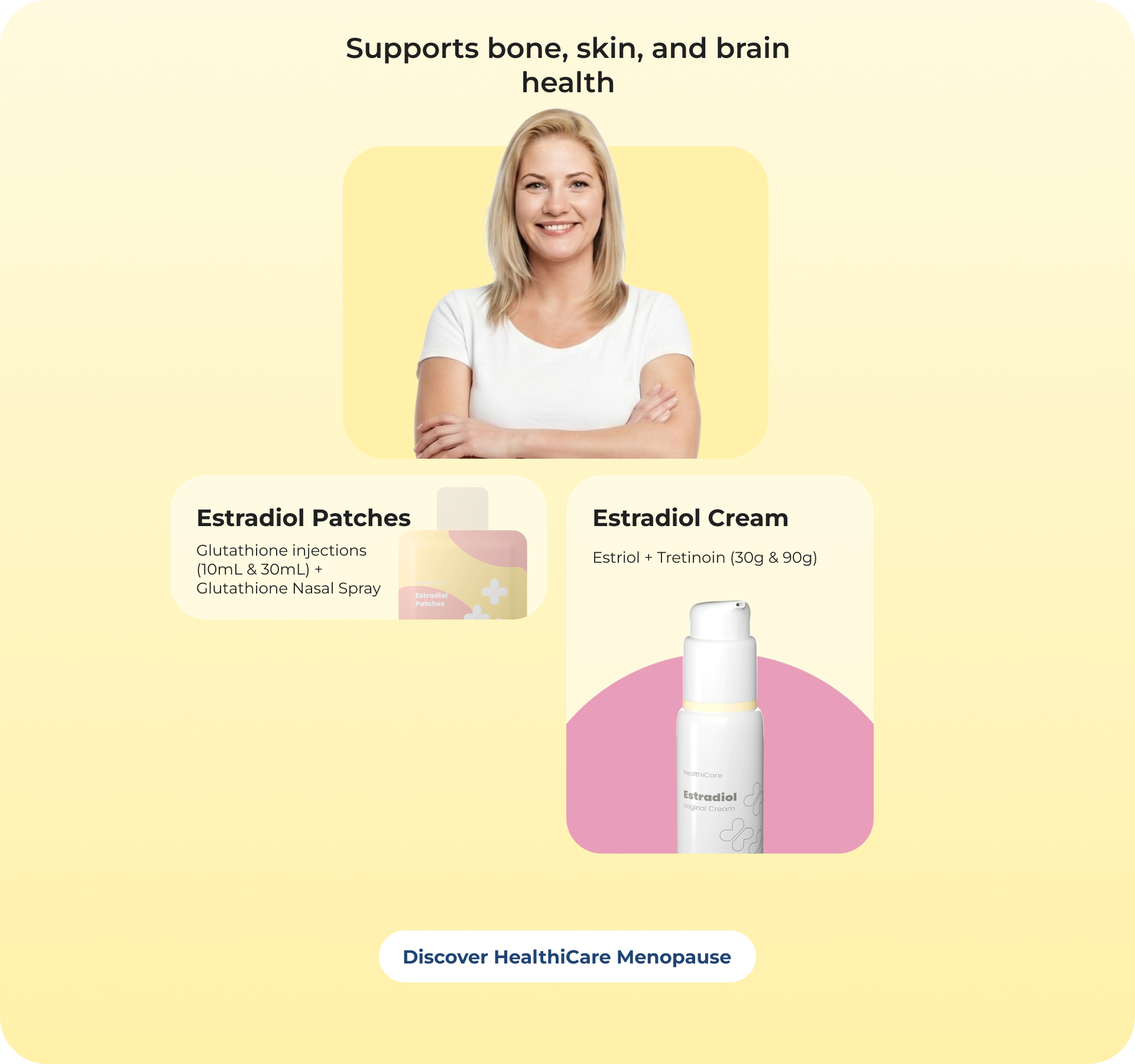 - A customizable topical gel that restores estrogen balance to support bone, skin, and brain health.